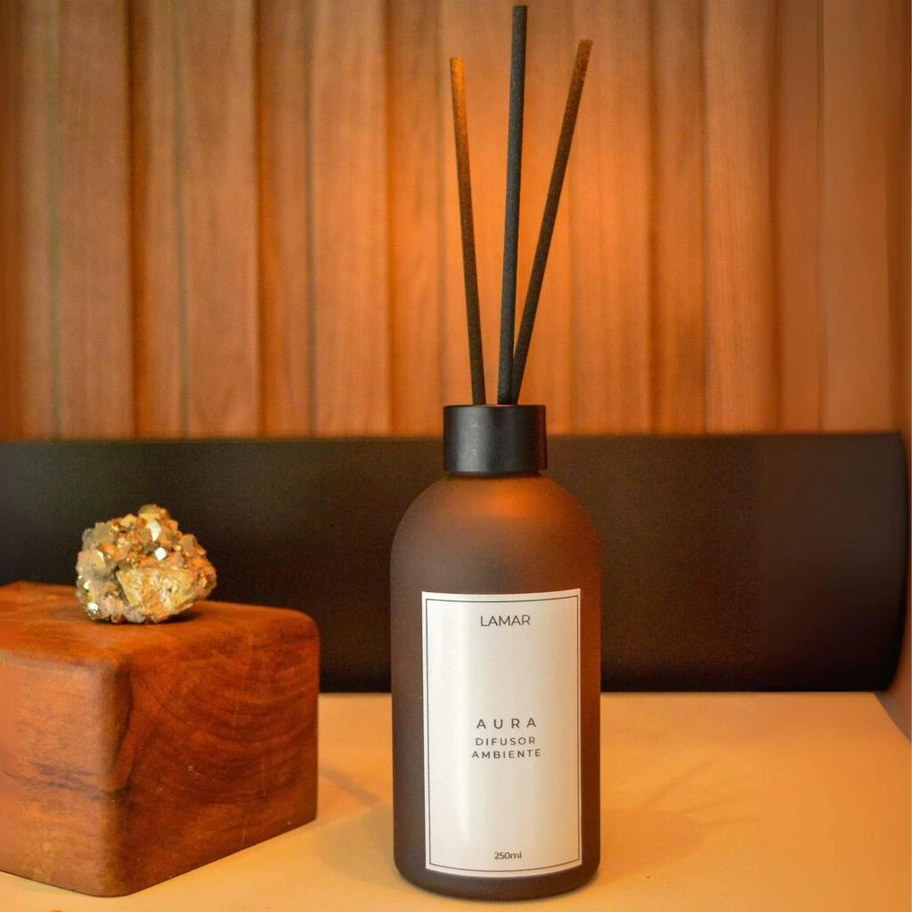 O difusor AURA é envolvente e marcante. Possui notas de saída com laranja, jabuticaba e lichia. O equilíbrio perfeito entre as notas florais de rosas e ylang ylang, combinado com o aroma frutal, traz energia, vitalidade e ação. Para quem busca um aroma refinado, com um toque afrodisíaco, se envolverá nas melhores sensações.